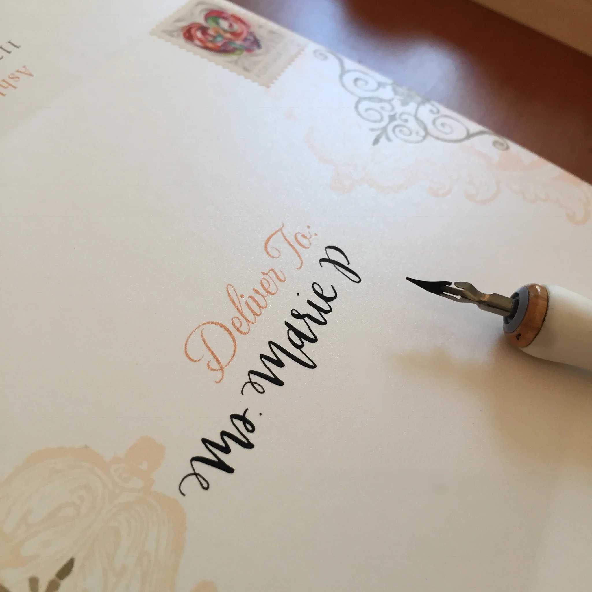 Calligraphy Services: Headings for invitation, menu, response card, and reception care.